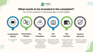 All interpreters must abide by the WFD-WASLI Code of Conduct. View Code of Conduct (PDF)